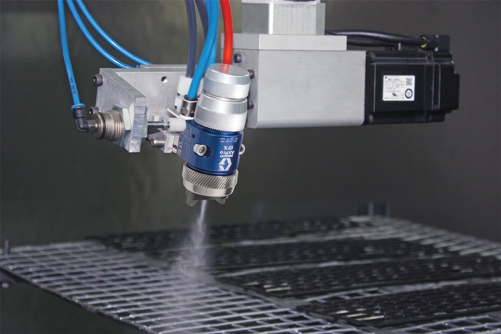 AirPro EFX Auto Air Spray Gun, Direct Connect, HiTEch, 0.028 inch (0.7 mm) Nozzle, SST Tip, Ultra Precision Fluid Adjust KnobThe AirPro EFX air spray automatic guns are among the lightest and most compact guns in their class. With no internal air shutoff mechanism, the AirPro EFX delivers increased reliability and precision fluid flow. The modest size and weight of this gun make it an excellent choice for fixed, reciprocating and robotic applications.Aircaps and nozzles deliver superior, precision spray performancePrecision fluid adjustment with a micrometer-telescoping knobHigh wear components designed for abrasive materialsExcellent fluid flow rate stability and repeatability