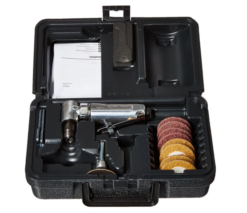 - Includes: 301B Air Angle Die Grinder, (4) 2" coarse pads, (4) 2" medium pads, Blow-molded case, 1/4" and 6mm collets, (2) Wrenches and Manuals