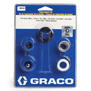 Application: The Graco Endurance Pump Repair Kit extends the life of your sprayer. Preventive maintenance lowers ownership costs and reduces downtime. Replace the wear parts in the pump when there is noticeable loss of pressure or if fluid is leaking out of the front of the sprayer.