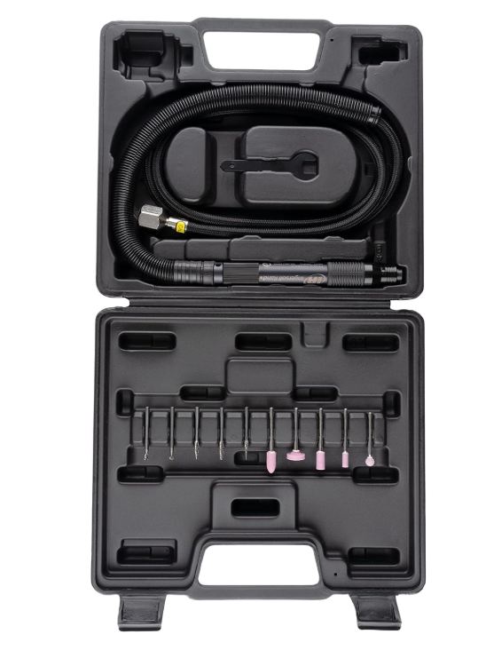 - Includes: (1) Tool, (2) Wrench, (1) Hose Assy, (1) Sleeve Exhaust, 5 Mounted points, 5 Carbide Burrs